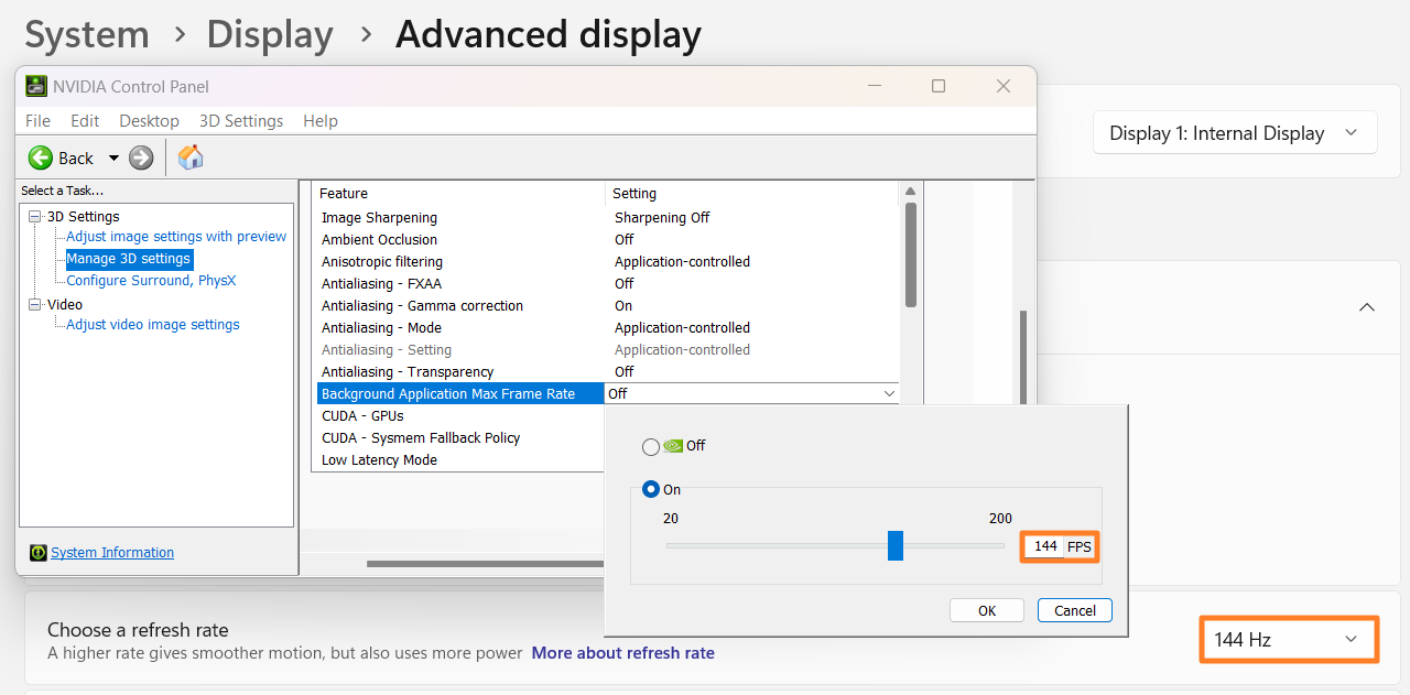 Look for your current refresh rate (e.g., 60Hz, 144Hz).