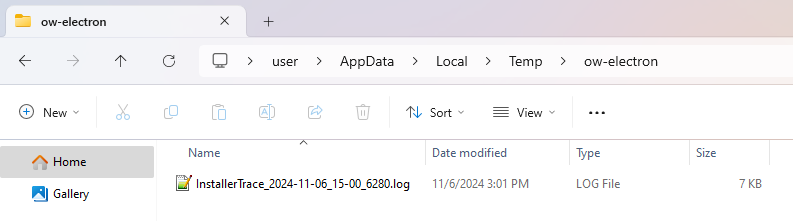 1. Collect the installer logs by going to %Temp%\ow-electron