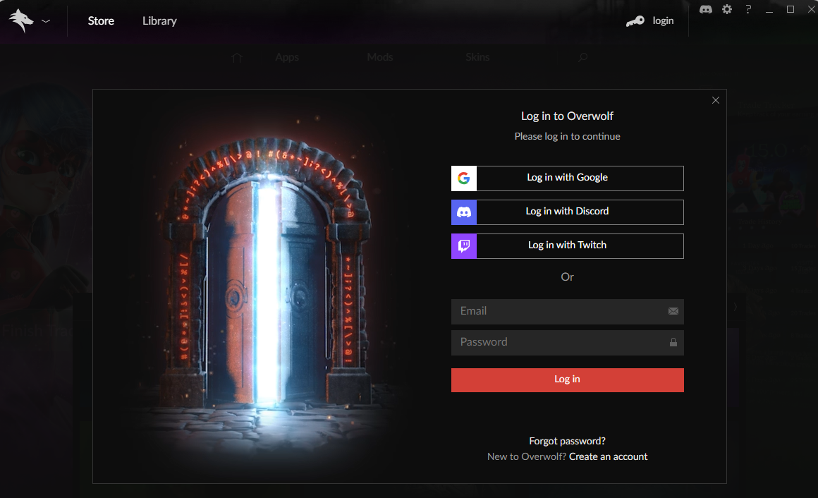 Note: Some Overwolf apps may require you to create an account for their own service as well.