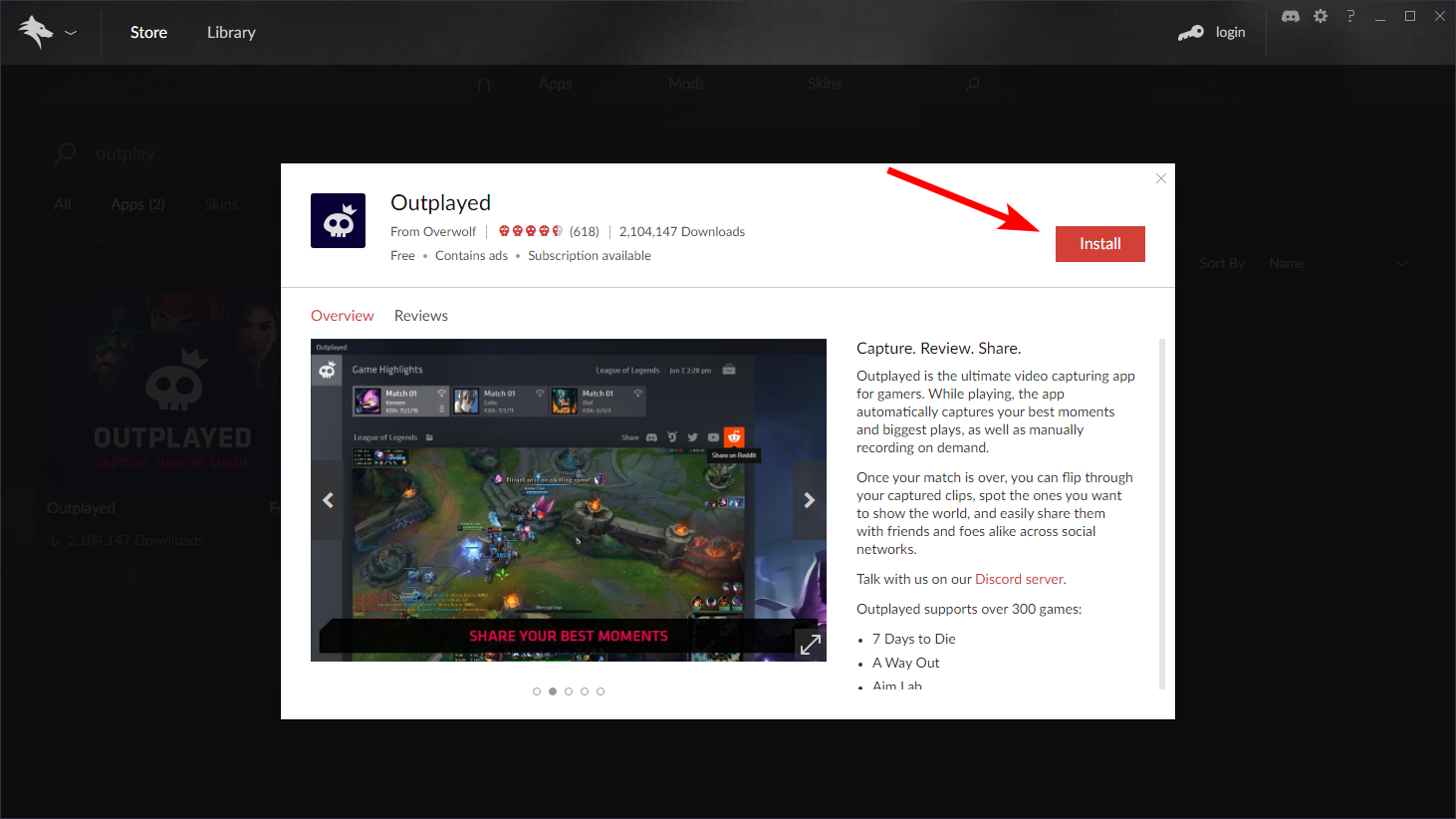When you find an app you want, click Install, and it will be added to Overwolf automatically.