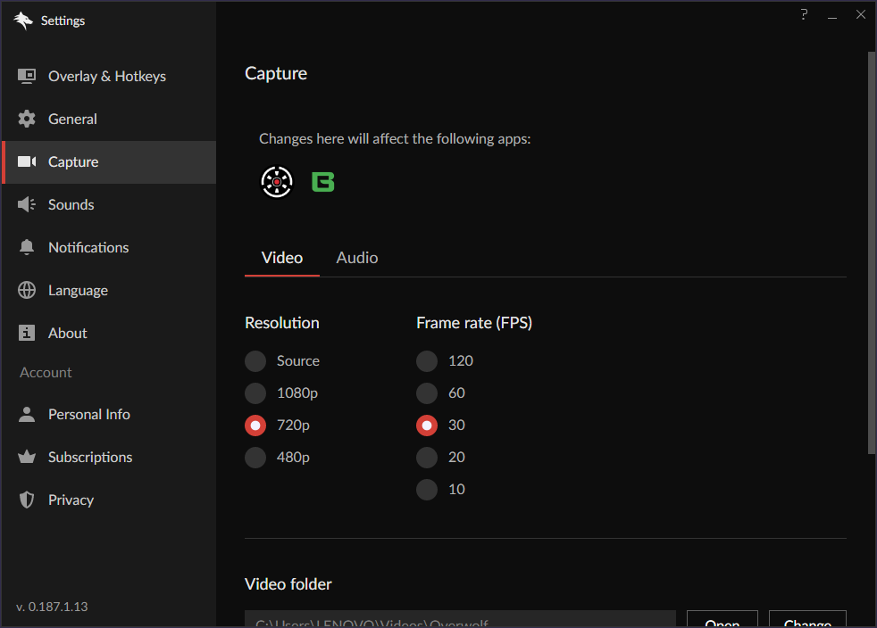 Once an app with recording or screen capture features is installed, you’ll gain access to Overwolf’s Capture settings.