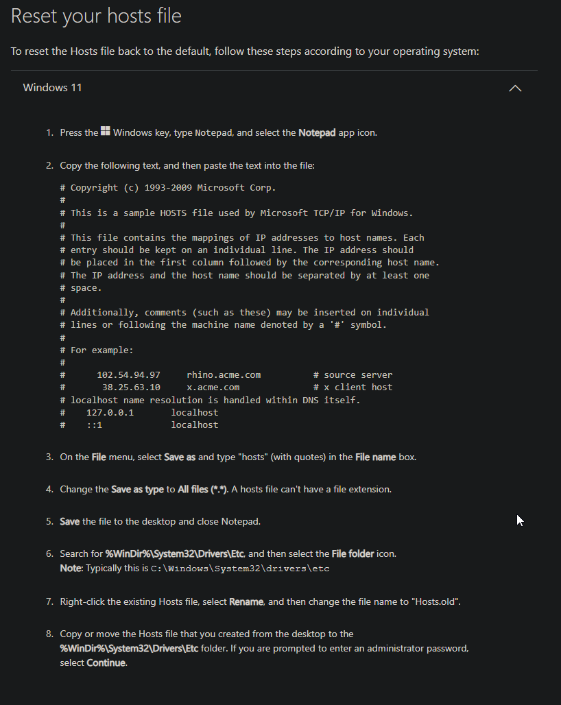 If you have received this error during the installation process, please follow this guide: How to reset the Hosts file back to the default (Microsoft) in order to reset your system's hosts file, then try to run the installer again.